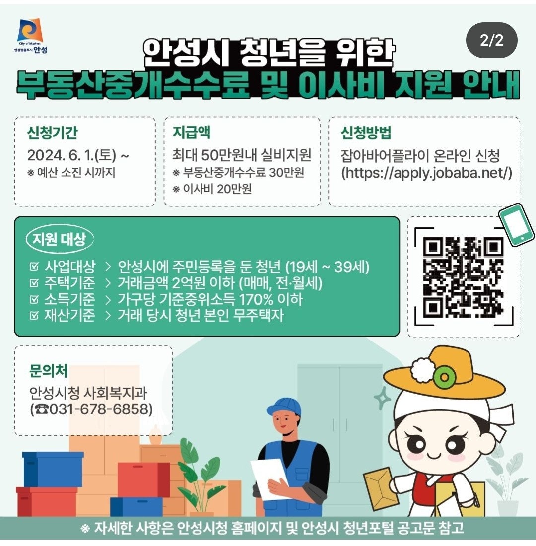 안성시에서 청년들의 주거비 부담 경감을 위해 『2024년 안성시 청년 부동산 중개수수료 및 이사비 지원사업』 대상자를 모집합니다. 이사를 하면 비용이 많이 드는데 지원을 해주니 너무 좋은 거 같습니다. 예산소진 시 종료되니 서둘러 신청하시기 바랍니다. 아래에서 지원자격 및 신청방법을 알아보겠습니다.