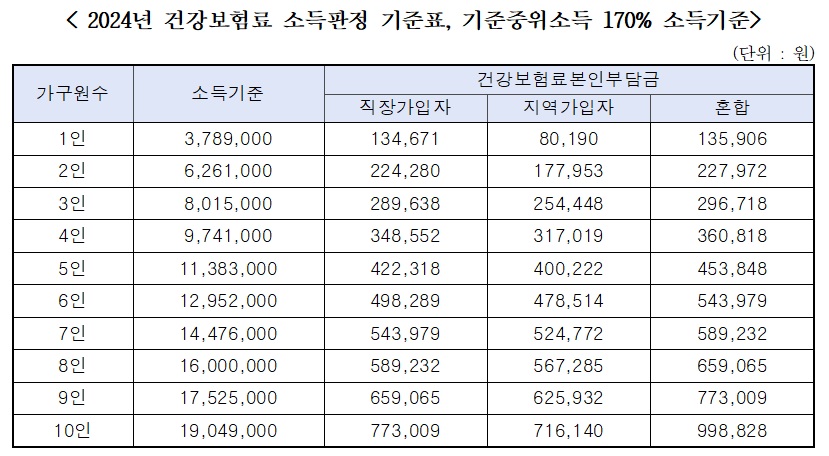 ① (소득기준) 가구당 기준 중위소득 170% 이하
