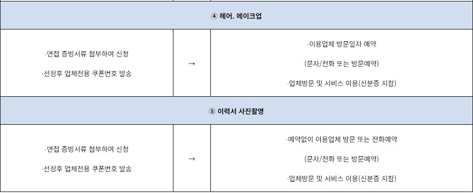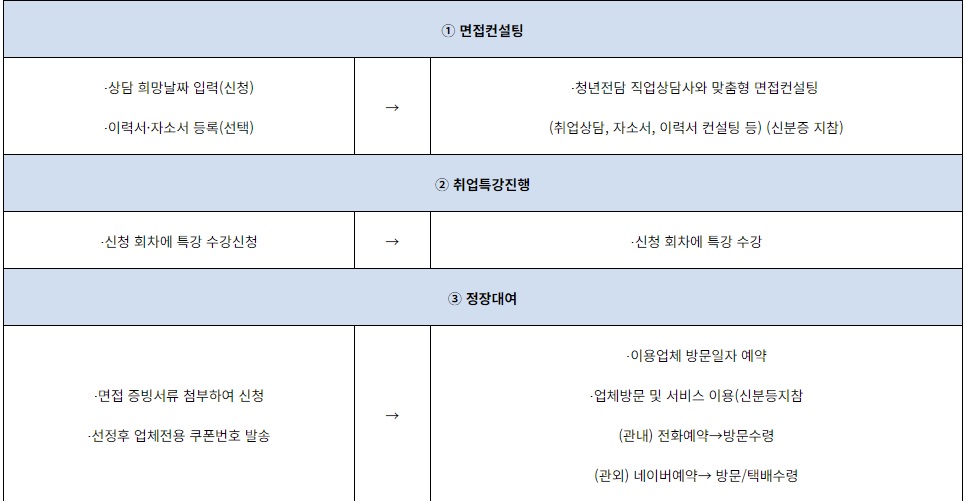 (3) 취업면접 지원서비스 이용 (아래 ①~⑤중 필요사항 모두 선택 이용 가능)