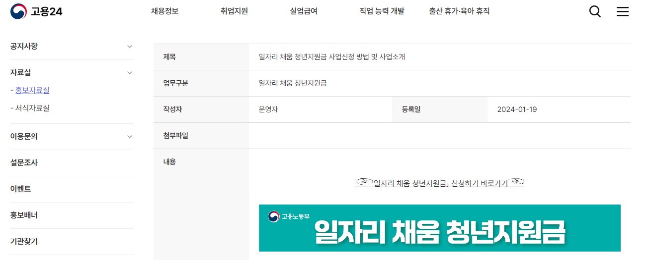 - 6개월 근속(2차 지원금): 정규직 채용일 기준 6개월 되는 날의 다음날 ~ 10개월 되는 날까지 신청