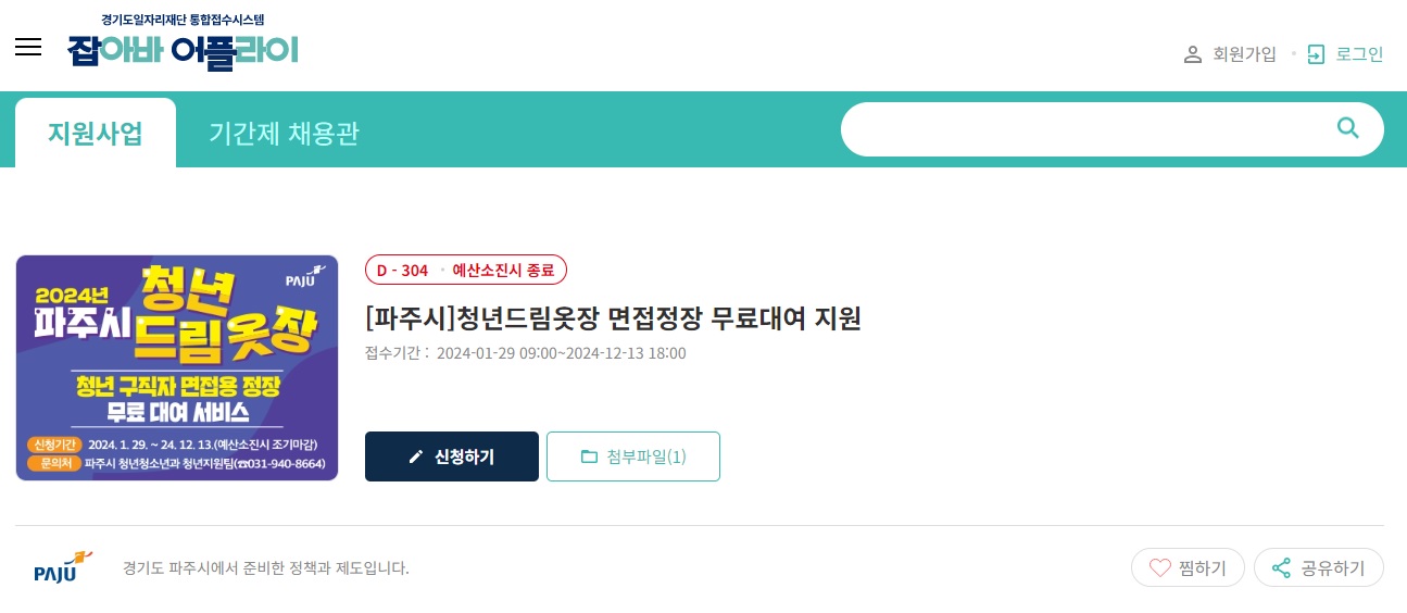 : 신청일 현재 파주시 거주 청년 구직자(만 18세 ~ 만 34세)