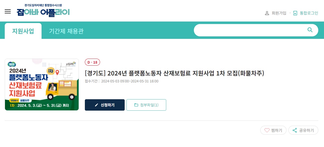 - 일자리지원사업 잡아바 어플라이 온라인 접수