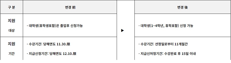 ※ 수강료 지급신청은 개인별 모든 수강이 완료 시, 합산하여 신청하여야 함