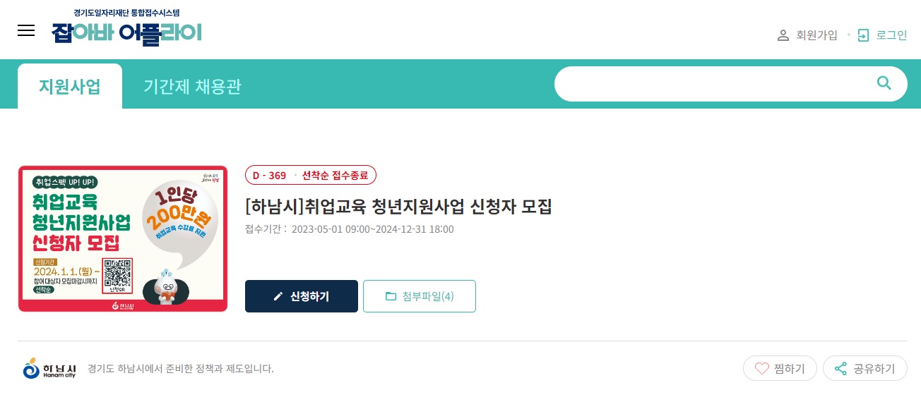 신청기준 : 신청일 기준 1년 이상 하남시에 주민등록을 두고 있는 청년