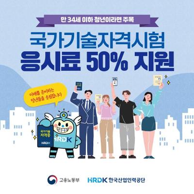- 한국산업인력공단 시행, 국가기술자격시험 응시료 50% 지원