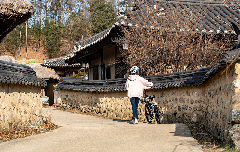 영주 자전거길은 4개 구간으로 다채롭습니다. 도심에서 물길 따라 무섬마을에 닿는 3·4구간 약 14.5km가 특히 아름답습니다. 영주시자전거공원에서 자전거를 빌려 도심을 가로지르는 서천 변을 달리면 조선 시대 의국 제민루, 정도전 생가로 알려진 삼 판서고택 등 명소를 만날 수 있습니다. 자전거길 곳곳에 소박한 마을과 나무가 우거진 자전거 전용 덱이 이어지고, 이따금 강변의 은빛 백사장이 반짝입니다. 1시간 30분 남짓 지나 무섬마을(국가민속문화재)에 이른 미다. 부드러운 물길이 감싸 안은 마을에는 350년이 넘은 만죽재고택(경북민속문화재)을 비롯해 전통 가옥 30여 채가 있습니다. 마을 구석구석 자전거로 둘러보면 고즈넉한 분위기에 스며든 미다. 영주시자전거공원은 상시 개방하며(연중무휴), 공원 내 공공자전거대여소에서 오전 10시부터 오후 5시(5시 30분까지 이용가능)까지 어린이용·성인용 자전거, 2인용 자전거, 전기 자전거 등을 무료로 빌려줍니다(명절 당일 휴무). 영주 여행에서 부석사를 빼놓을 수 없습니다. 배흘림기둥으로 건축미를 완성한 무량수전(국보) 앞에서 바라보는 소백산 능선은 감탄이 절로 나옵니다. 소수서원(사적)은 우리나라 최초의 사액서원으로, 자연 속에 정연하게 자리합니다. 영주호 용마루공원은 용비교, 용두교와 어우러진 호수 풍광에 가슴이 탁 트입니다. 일몰 후 조명이 들어오면 화려한 자태를 뽐내니다.