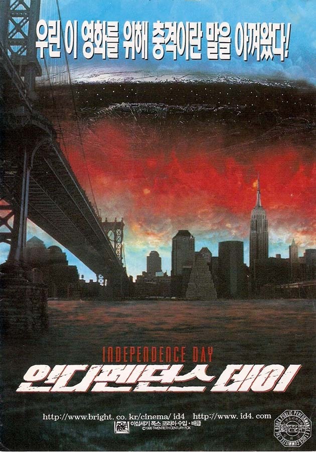 외계인 침공을 그린 영화로 1996년에 개봉해 초대박을 친 영화입니다. 지금은 약간 어색하지만 그래도 지금 보아도 크게 무리 없는 CG나 특수효과 매우 뛰어난 작품입니다.